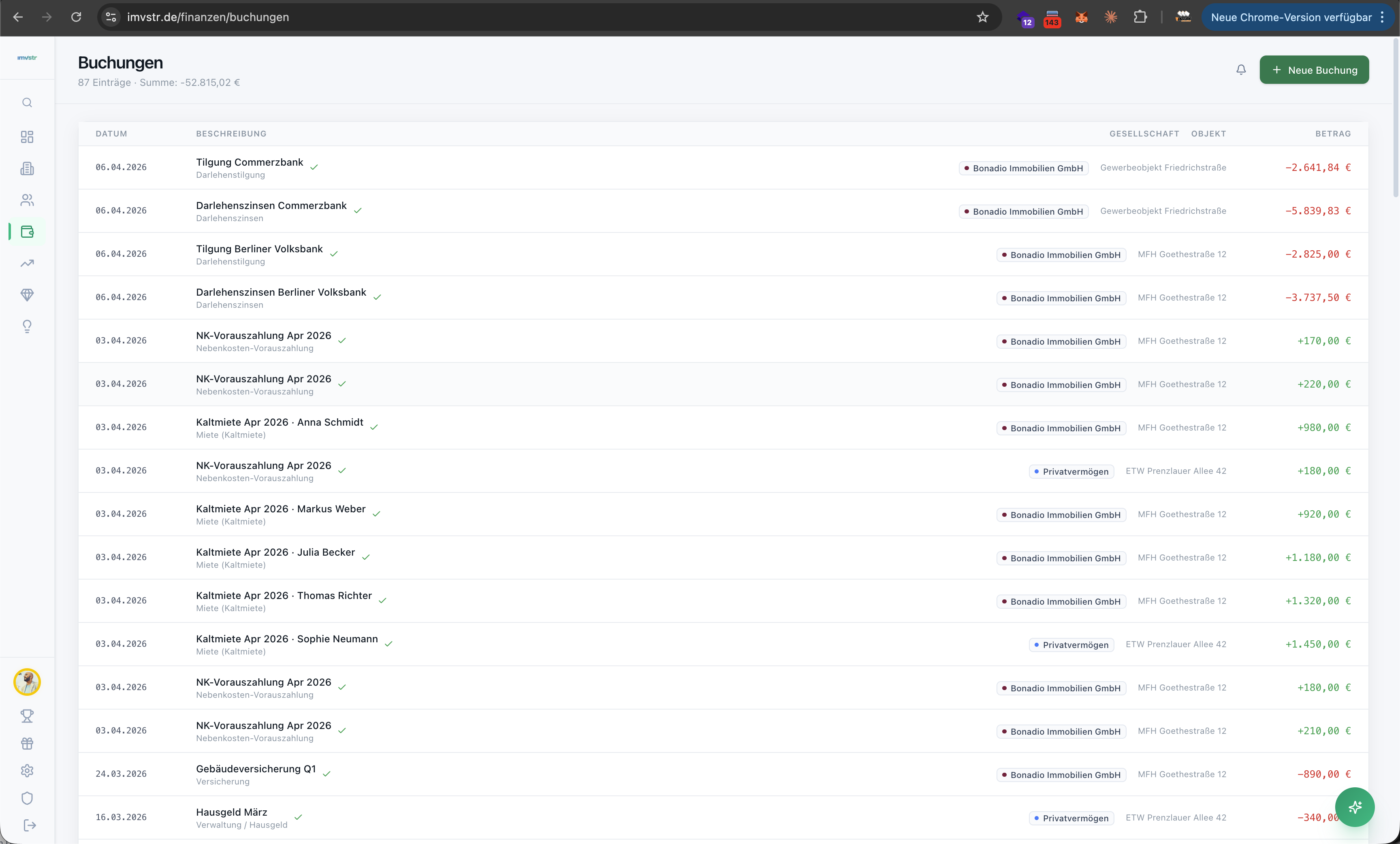Automatischer Soll-Ist-Vergleich der Mietzahlungen mit taeglicher Aktualisierung