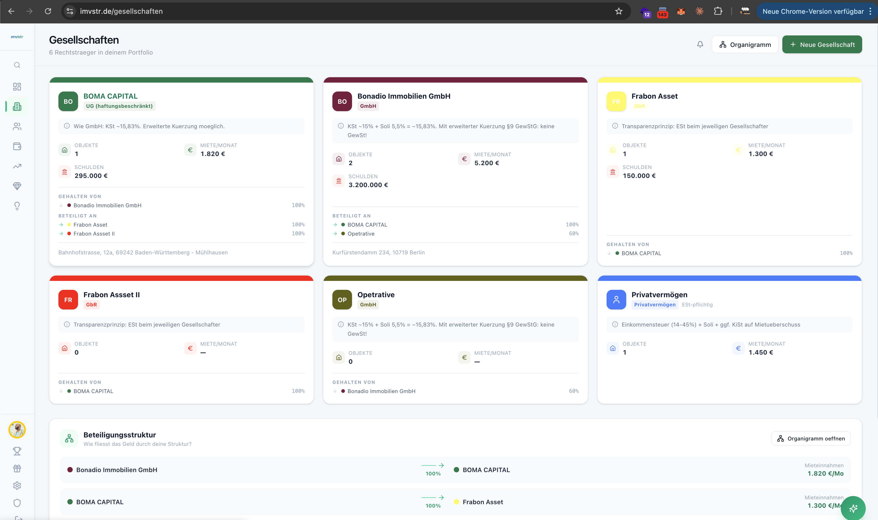 Beteiligungsquoten, Geschaeftsfuehrer-Markierung und Gesellschafter-Details