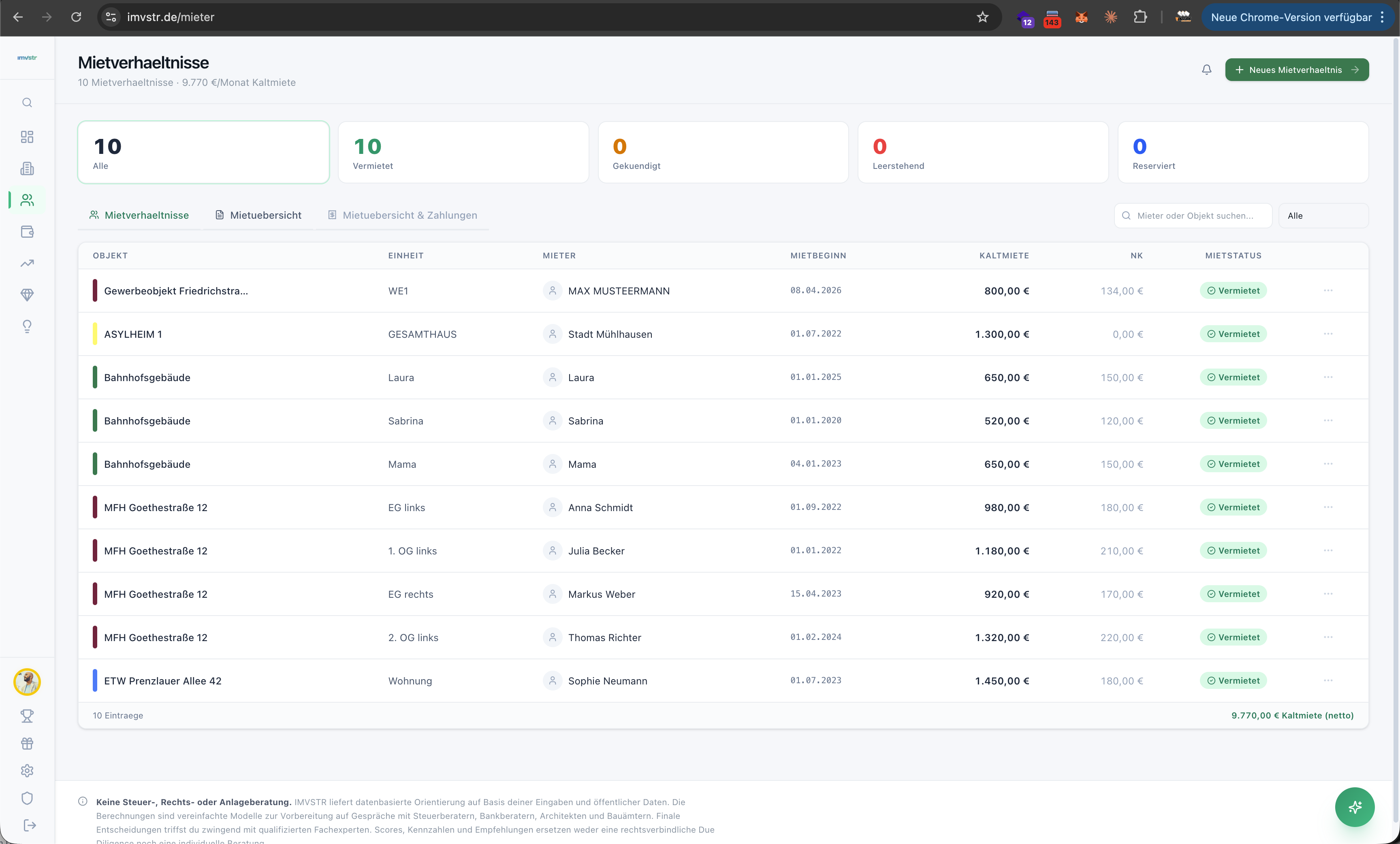 Cashflow, Mietpotenzial, Steueroptimierung und 3-Monats-Ausblick